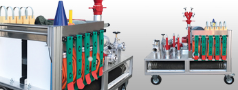 The fire extinguisher trolley is particularly suitable for maintenance companies, factory and professional fire brigades to quickly and efficiently collect fire extinguishers and exchange them on site.