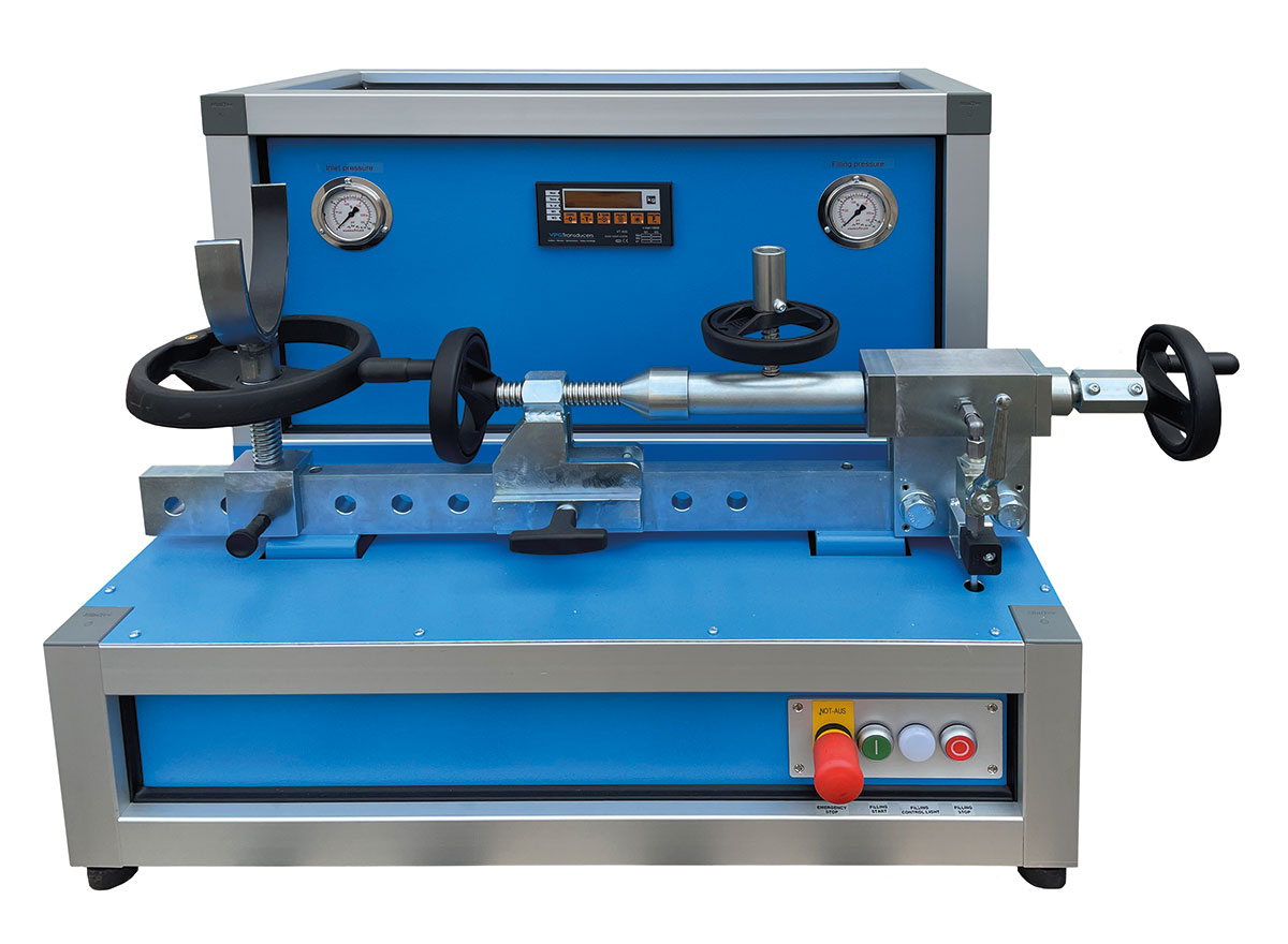 Electrically powered CO2 filling machine with integrated filling station for filling CO2 cartridges from 20 g to 6 kg CO2 bottles.