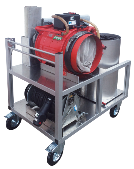 Der EMDE-Rollcontainer Modell LÜFTER dient zur Aufnahme eines mobilen Druckbelüfters samt Zubehör (Kanallutte, Kanister und Trichter). Er ist ausgestattet mit 2 Lenk/Brems- und zwei Bockrädern.